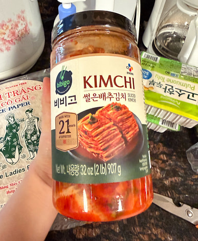 Kimchi is delicious and it's convenient because it's already cut up.
