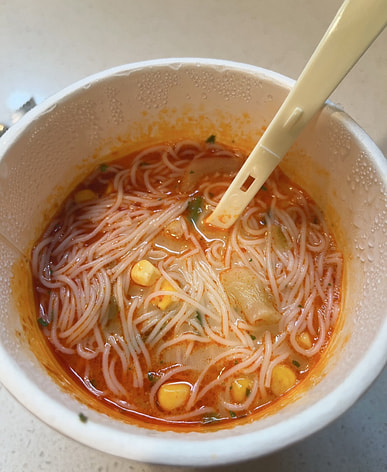 It's very convenient; just add hot water and cook for 2 minutes. The flavor is slightly sweet with a coconut aroma, and it tastes much better with some Sriracha sauce.