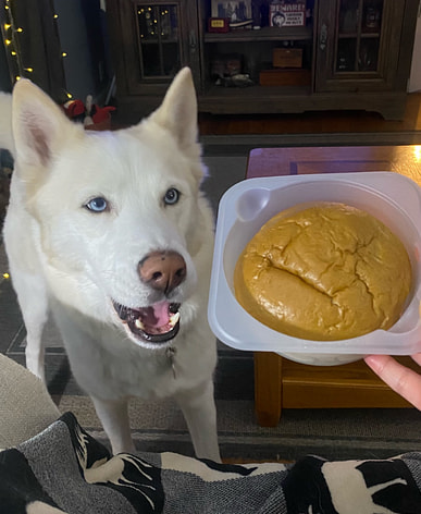 The bread is about the size of a husky's head and has a generous filling.
