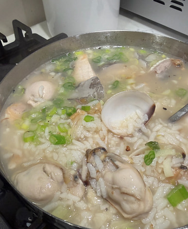 Milkfish, oyster, and clam congee