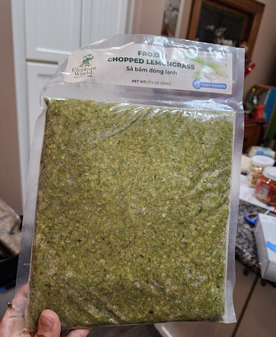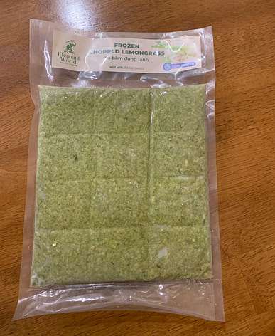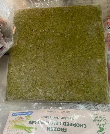 Frozen chopped lemongrass, but still fresh and green.