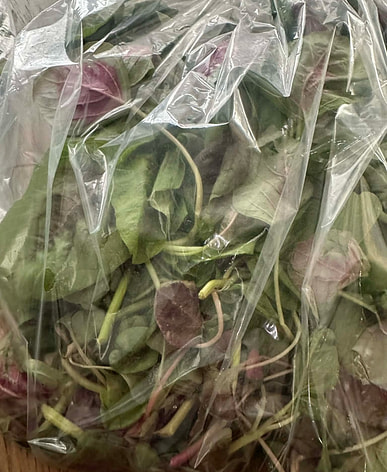 The spinach is fresh! No rotten leaves! It's good stir-fried or in salads. It's also delicious in egg and shrimp pancakes.