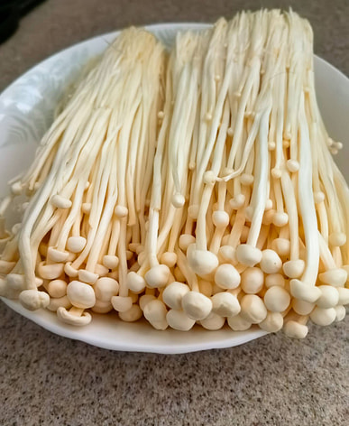 Organic enoki mushrooms, small quantity, fresh, suitable for stir-fries and soups. Feel free to add to your cart from my video. Thank you for your support!