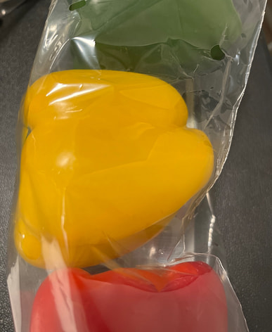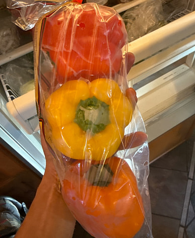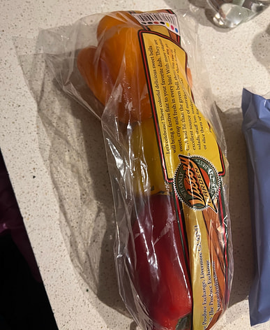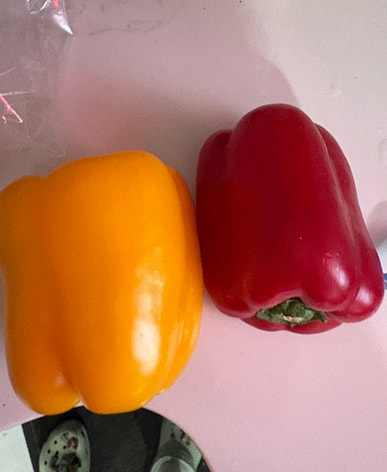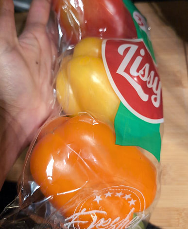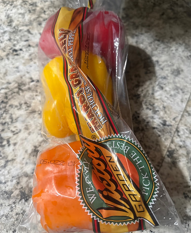 Three-color peppers, three primary colors, really good.