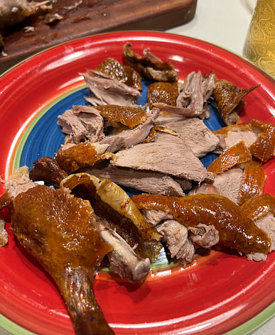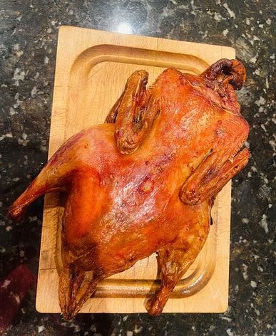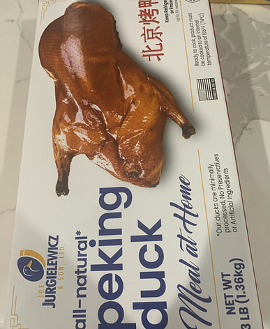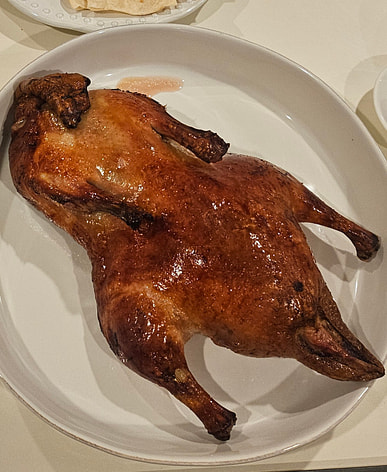 It's a bit of a hassle to roast, but it tastes even better than Quanjude's! The duck is very tender and has no gamey smell. There isn't much meat, but it should be enough for three people.