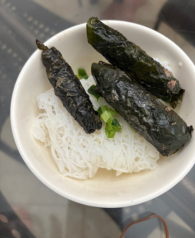 Use beef rolls to grill and eat with vegetables and rice vermicelli, very delicious