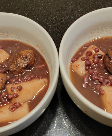 My favorite Sato mochi was on sale, so I bought two bags. I put them in my red bean soup. They were slightly browned, fragrant, and delicious.