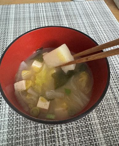 I put it in soup and made an instant ozoni (rice cake soup) to eat on New Year's Day.