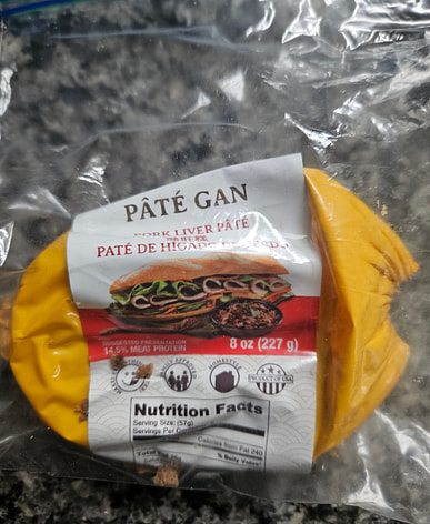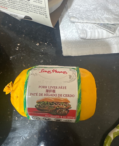 Vietnamese Pate (cured pork liver) in a convenient can.
