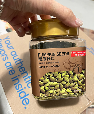 Pumpkin seeds, rich in magnesium, are a healthy and nutritious snack. This is my first time buying this brand; I hope they taste good.