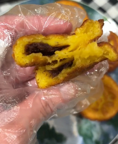 Deep-fried, they're delicious, not too sweet, and the skin is chewy and soft.