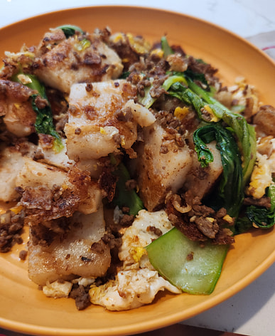 I never expected that stir-fried radish cake with satay sauce would be so delicious. You absolutely have to add an egg; you can't eat radish cake without an egg. It's so good.