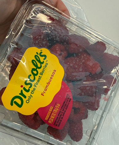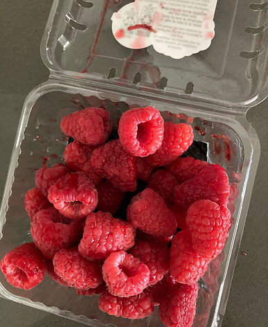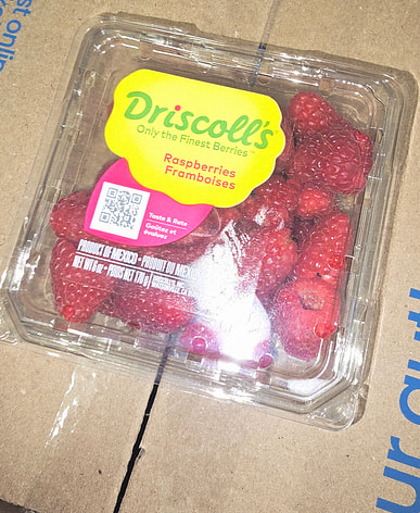 Small pack of raspberries, very fresh and sweet