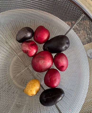 These are my favorite potatoes, especially the dark purple one. It's a pity I can't find all-purple ones.