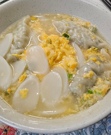 The rice cake dumpling soup was delicious.