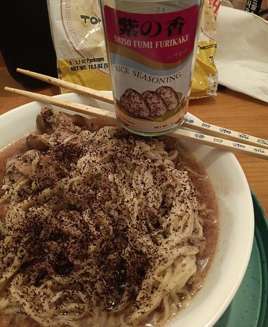I purchased this shiso furikake as my usual go-to Yukari seasoning is not in stock online or in stores. When added to freshly steamed white rice, the red perilla leaves dye it a beautiful fuchsia color. it has a delicious salted and herb-y flavor