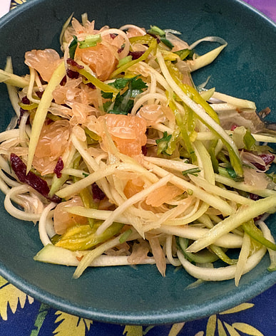 very crisp, fresh, crunchy, tangy sweet - perfect with golden pomelo in my goi