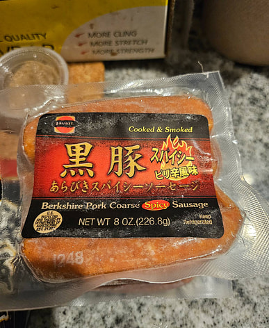 It came frozen. It's my first time eating Japanese sausage, and it tastes smoked.
