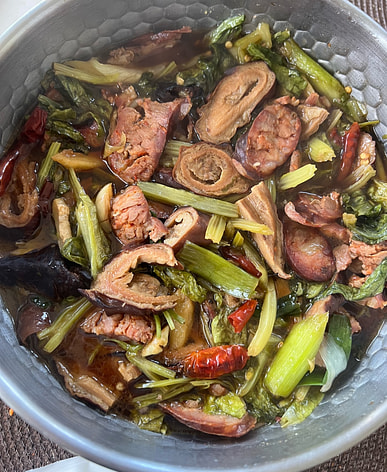 Although it contains whole Sichuan peppercorns, the peppercorns don't make it numbing. The delicious part is the authentic Sichuan-style smoked sausage.