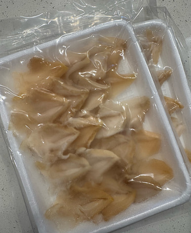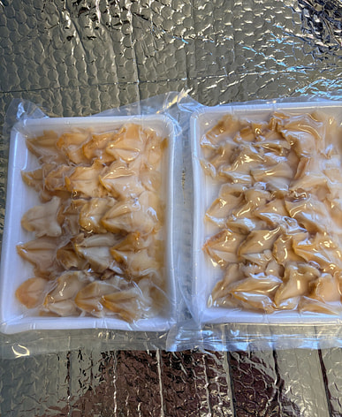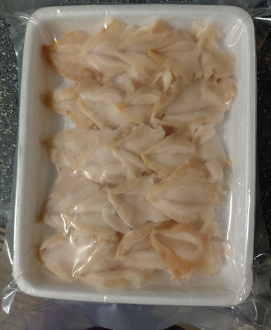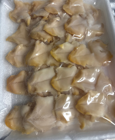 I just received my Frozen WHELK MEAT nicely packaged it looks like I got 20 pieces which is very nice they look good I'll let you know how they taste when I decide to eat them