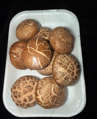 Plenty of delicious looking shiitake mushrooms.