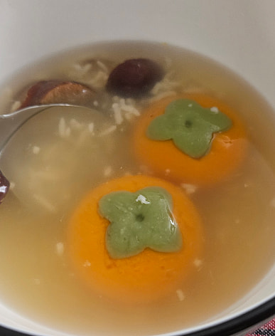 It's cute and delicious. I made red bean sweet soup and served it with hot mochi.