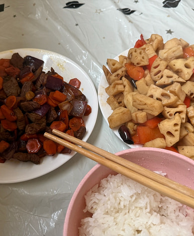 Stir-fried beef with carrots is the dish I eat the most.