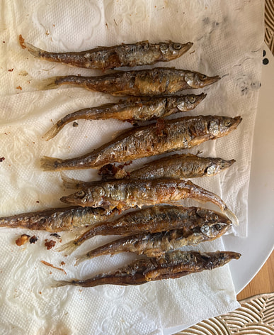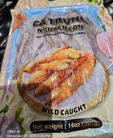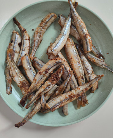 I love these small fish with the roe. fry them with a dusting of potato starch. then dip in a mango chili sauce. so good!