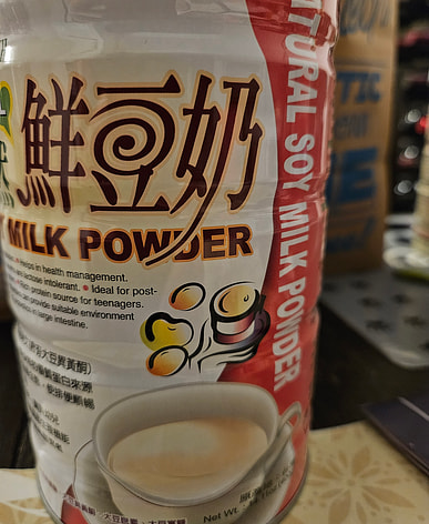 My favorite soybean milk powder. To avoid lumps, I always add some cold milk or water to mix with the powder and then add hot water.
