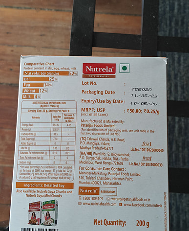 Nutrela offers the best Soy granules in terms of its quantity, calories per serving at the best price. I literally ordered 4 boxes for the best price. It's the best option if you want to buy Soy.