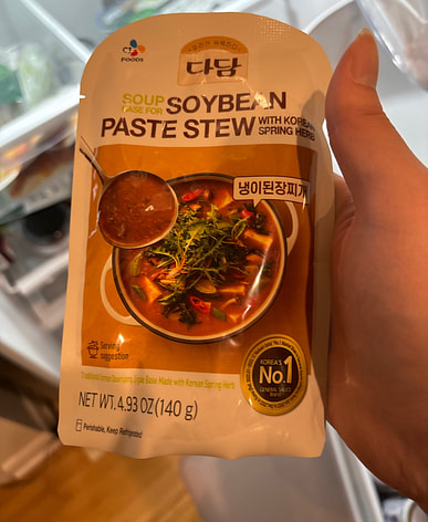 I really wanted some fermented soybean paste stew, so I ordered it and it was delicious. They only had the seasoning sauce, so I added a few different things to it.