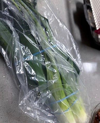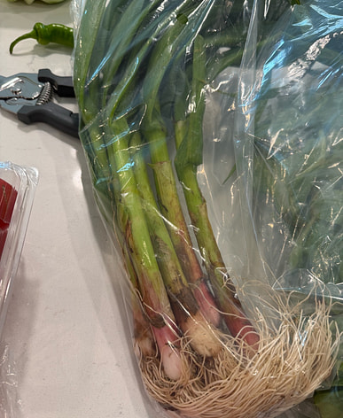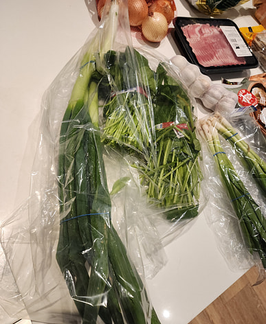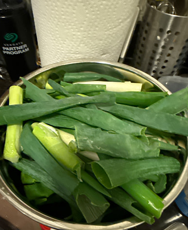 These are fresh green onions. I'm looking forward to putting them in sukiyaki All that's left is to cut them up and freeze them.