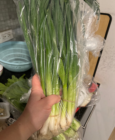 These days, green onions are expensive, but that guy is cheap and fresh.