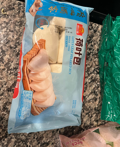 Lotus leaf buns are often eaten with meat.