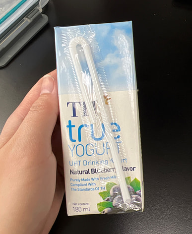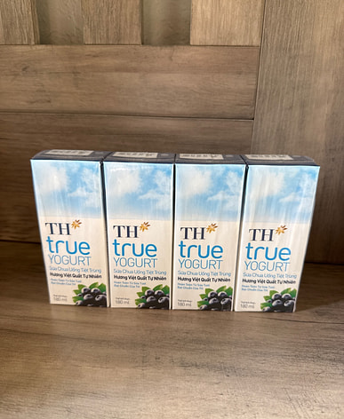 TH Blueberry Flavored Yogurt Drink, 4 boxes, 180 ml each. This should be strawberry flavored, it's a typo and it's blueberry flavored.