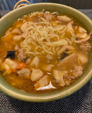 Delicious! I added the pork (from Weee!), mushrooms and veggies. It was not very spicy, which was fine with me. You can always add chili oil or something if you want it more spicy.