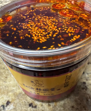 This chili oil is a bit spicy, but it smells really good.