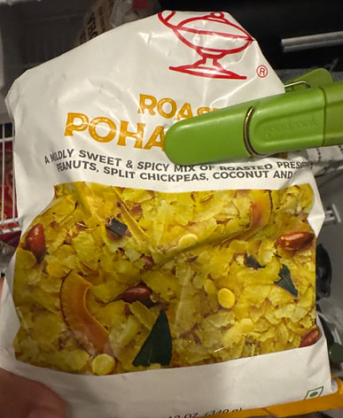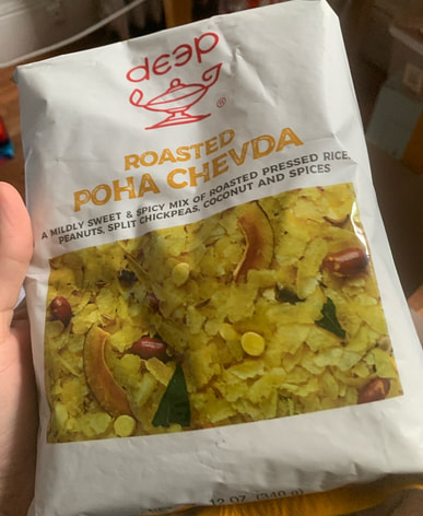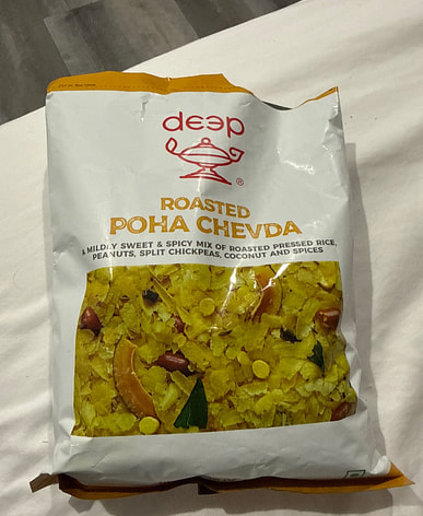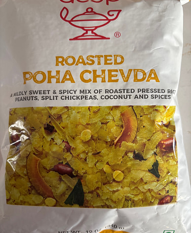 It's fresh and crispy and slightly spicy, but it's 99% only poha. Didn't see any kaju, peanuts, or dry coconut pieces, just a few roasted chana dal and curry leaves.