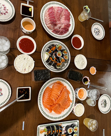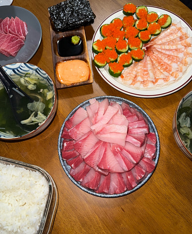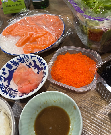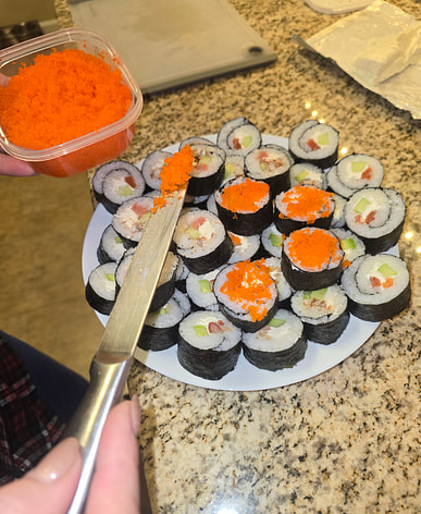Preparing to make sushi, the kids love it.