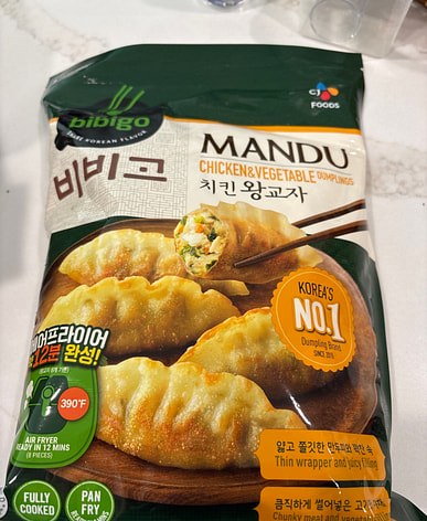 I always order Bibigo dumplings, and the kimchi is delicious too.