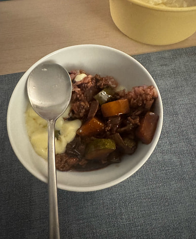 We had hot pot. It looked fatty, but it wasn't gamey or greasy at all; it was delicious.