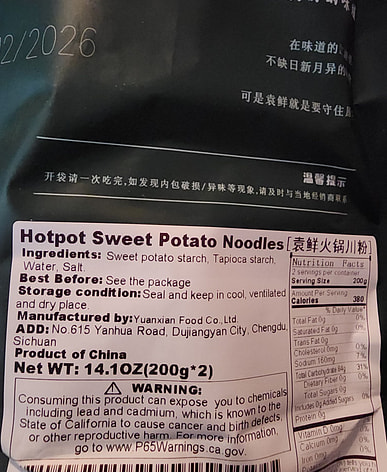 My favorite noodles for hot pot. Simple ingredients, no chemicals.