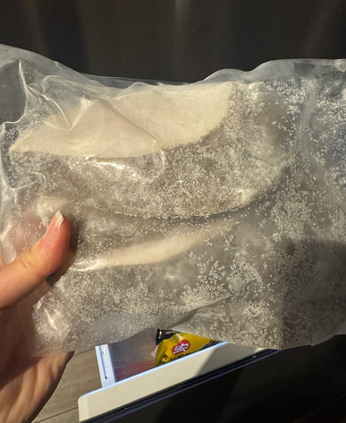 The fish arrived with alot of ice inside the bag. This is supposed to be vacuum sealed with exp . But, the bag is not sealed properly , it has a small opening and there’s ice inside and the fish has freezer burn.