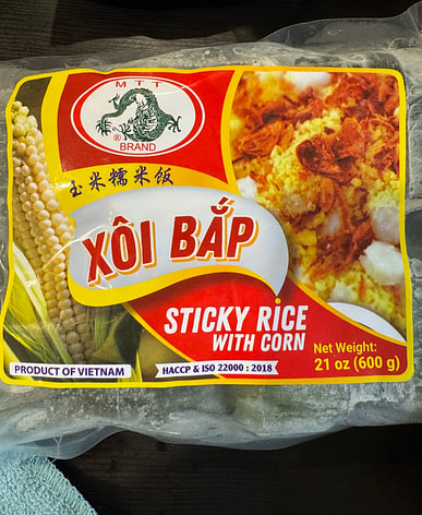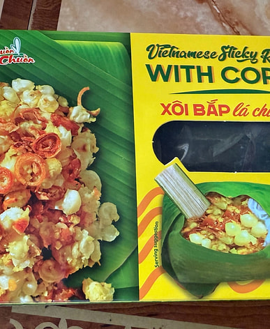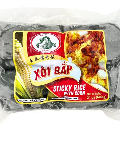 Xoi bap is a Vietnamese dish made from sticky rice and corn kernels.