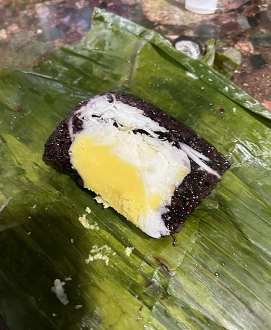 Yummy! Love the black sweet rice cooked with mungbean and shredded coconut meat.