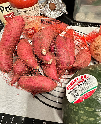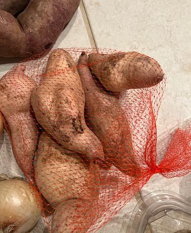 There were four large sweet potatoes in it! I was surprised because the ones I got last time were small and thin.