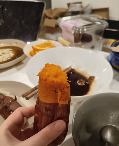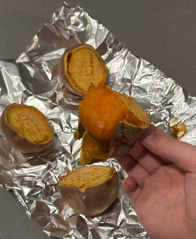 Roasted sweet potatoes, very delicious. They're sweet.