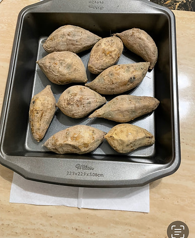 The sweet potatoes were delivered fresh. They're even sweeter and tastier when baked in the oven.