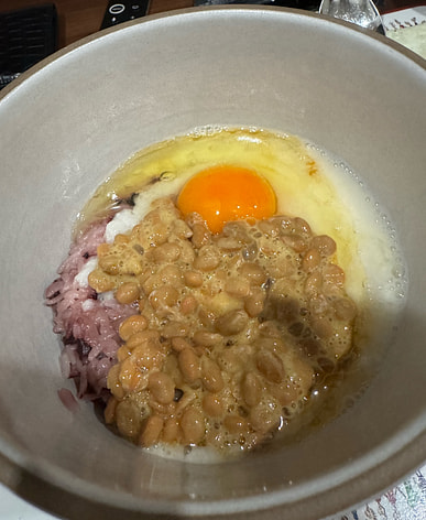 Fresh mountain yam, put over rice with natto