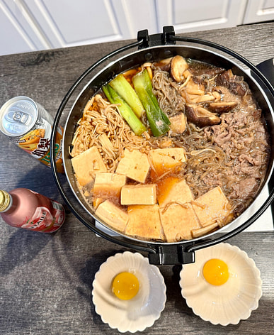 Potato stew with meat is great in sukiyaki.